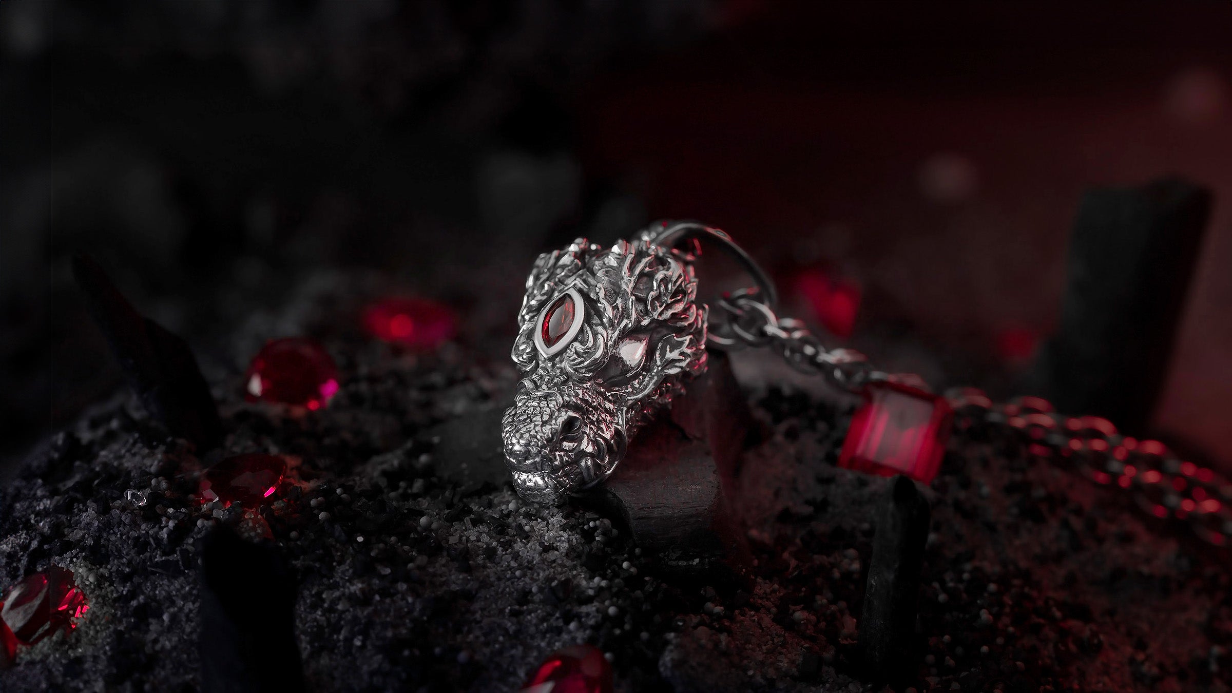 Gem Dragon V2 curls upon stone, crystal rising around it. A silver sculpture of stillness and strength — the breath between storms, the heartbeat of the earth.