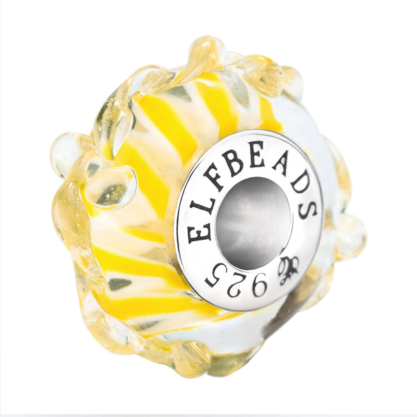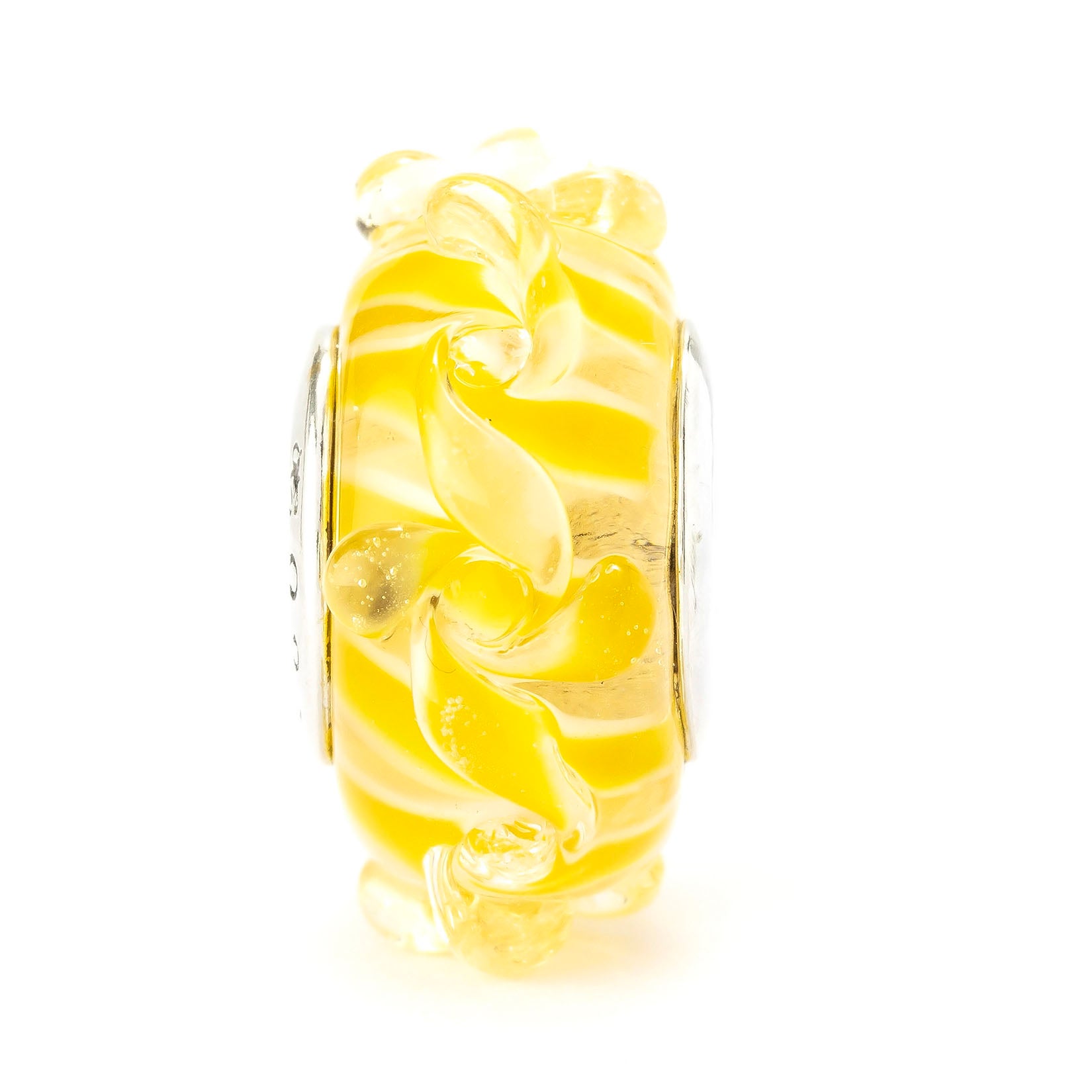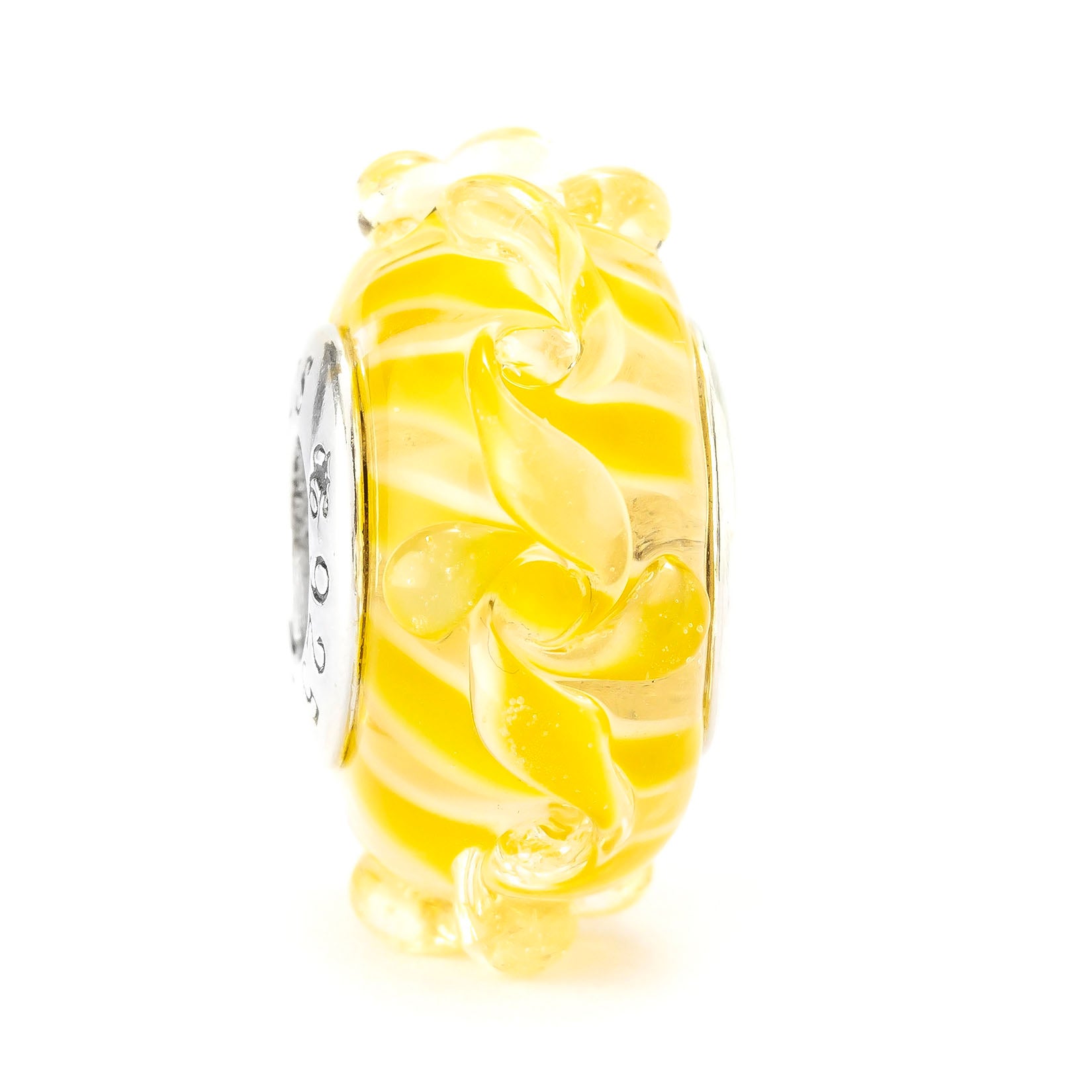This bead radiates warmth and delight, swirling with soft sunlight and island breeze. Each petal-like crest sparkles with gentle magic - a little wave of happiness, shaped by the sun itself. A reminder that joy, like light, always finds its way to the surface.