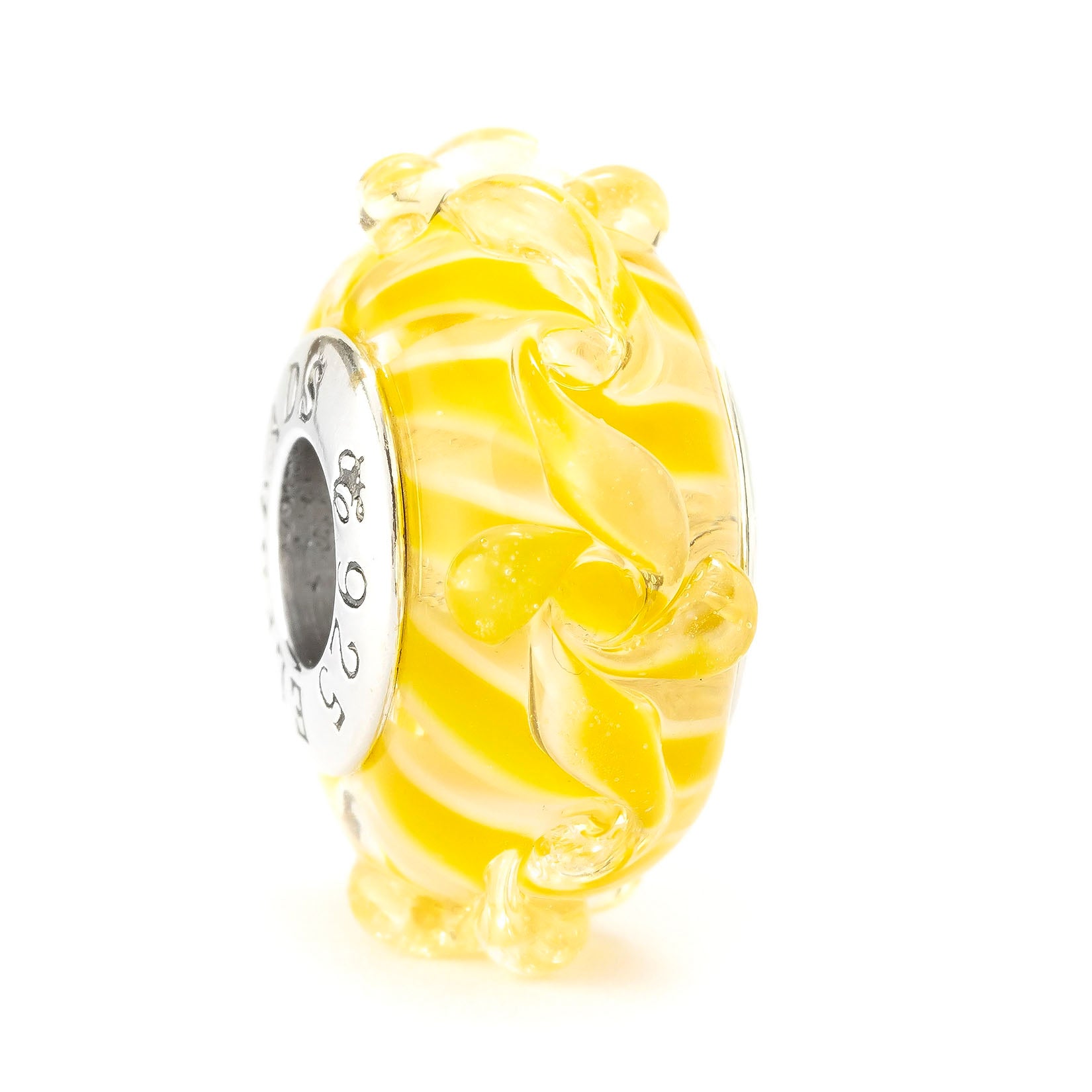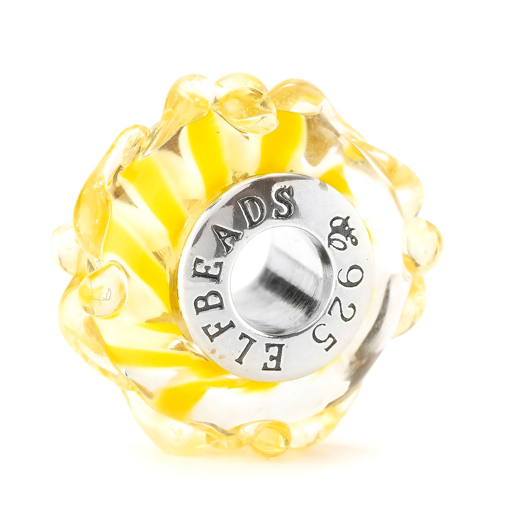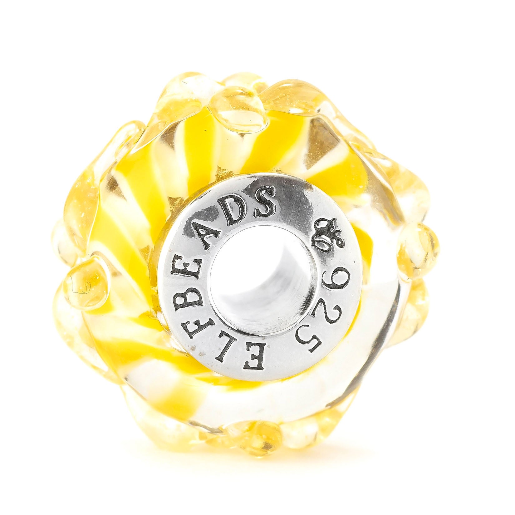 This bead radiates warmth and delight, swirling with soft sunlight and island breeze. Each petal-like crest sparkles with gentle magic - a little wave of happiness, shaped by the sun itself. A reminder that joy, like light, always finds its way to the surface.