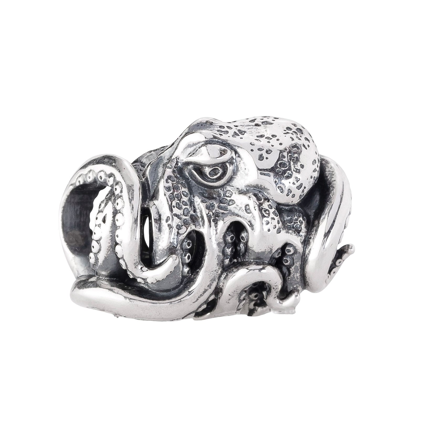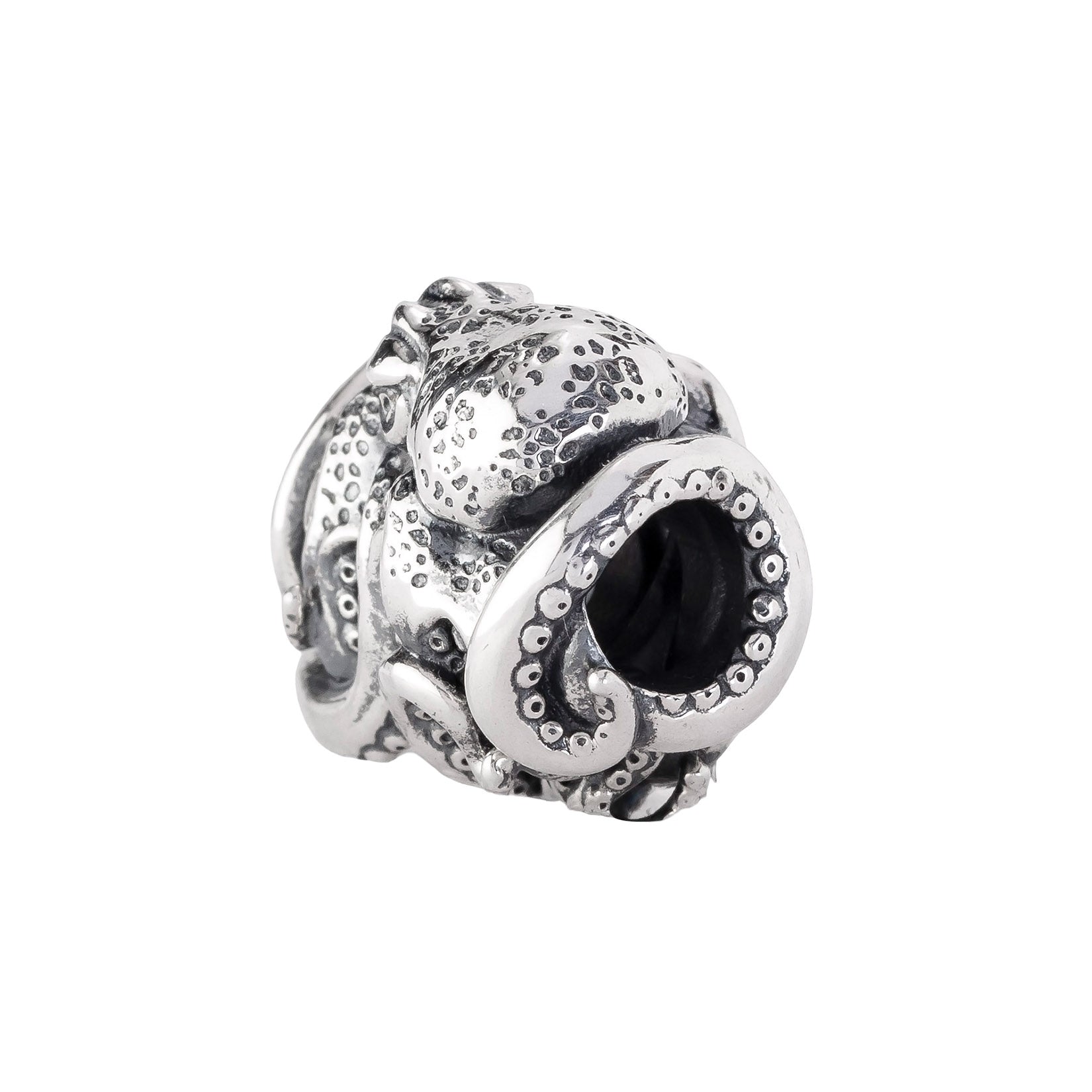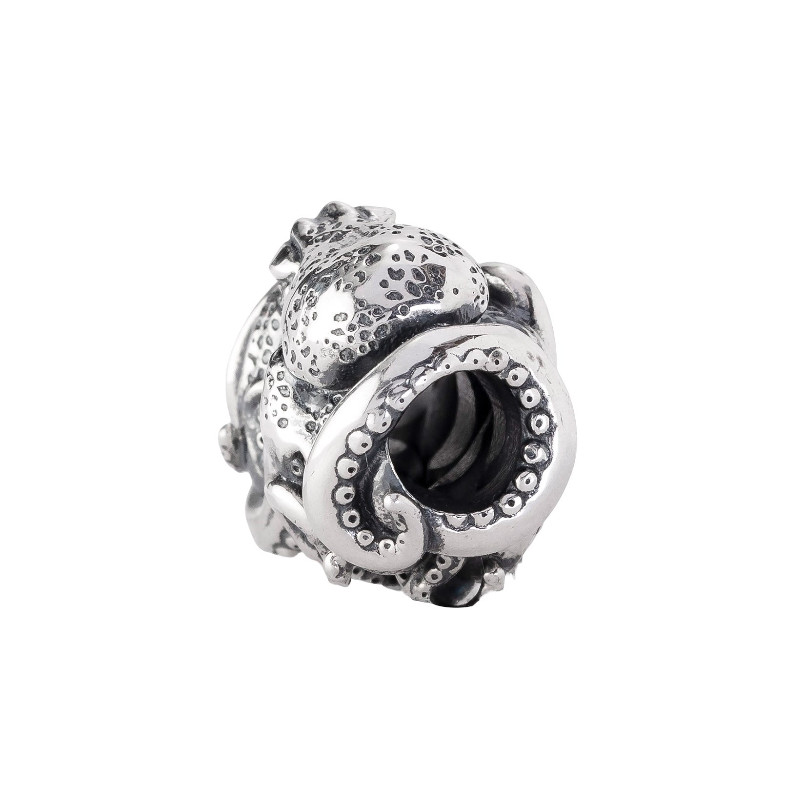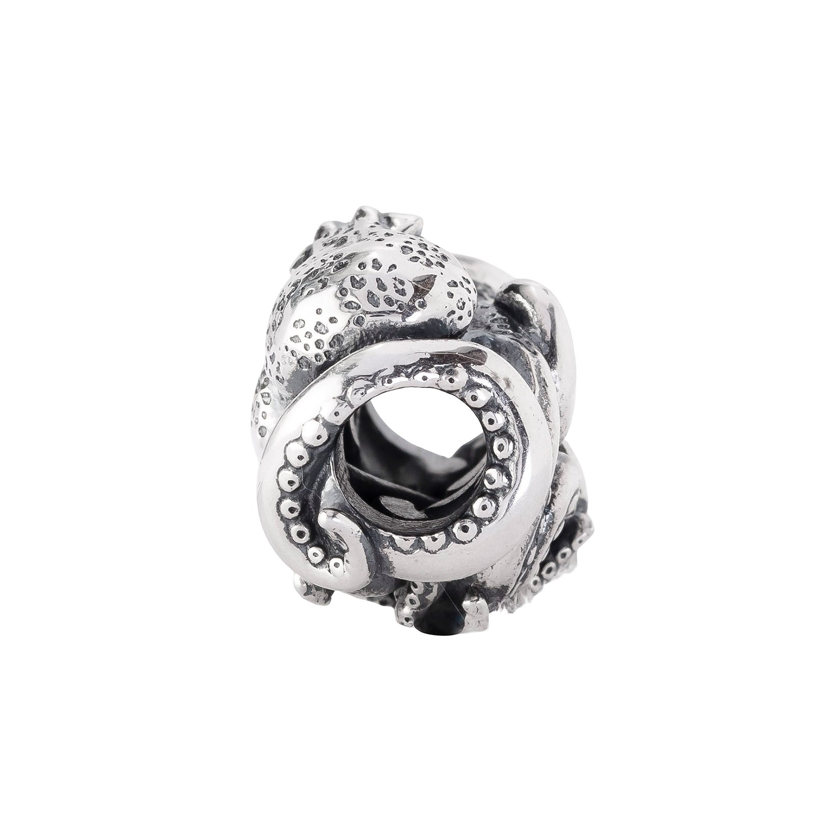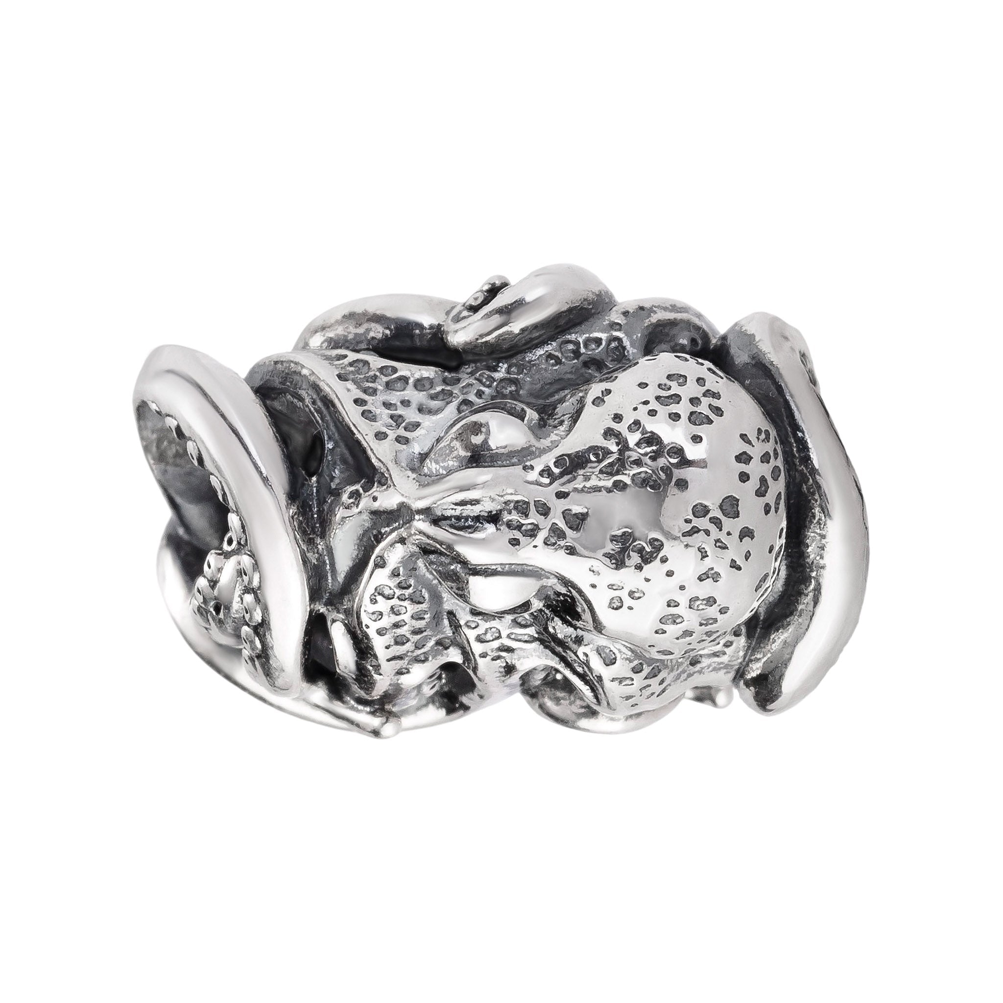 Designed by Dora Putero. Bead size: Height ~14mm; Width ~18mm; Depth ~11mm; Weight ~7g. The 4.7mm hole fits Elfbeads, Pandora, and Trollbeads bracelets. Crafted from premium nickel-free sterling silver, each bead is marked with the E925 hallmark for Elfbeads and 925 silver.