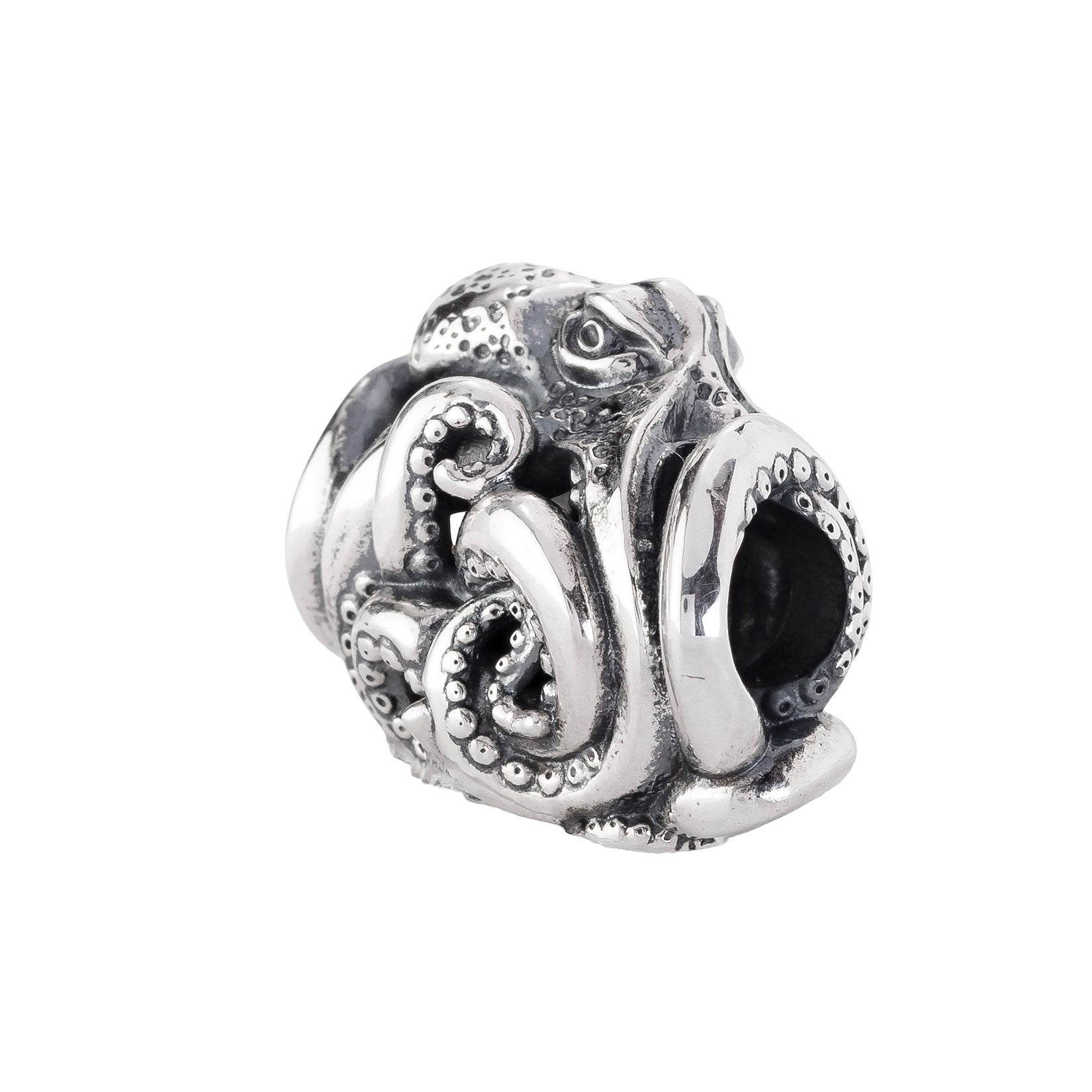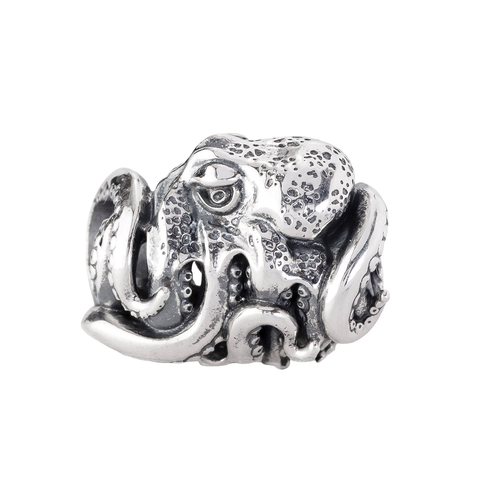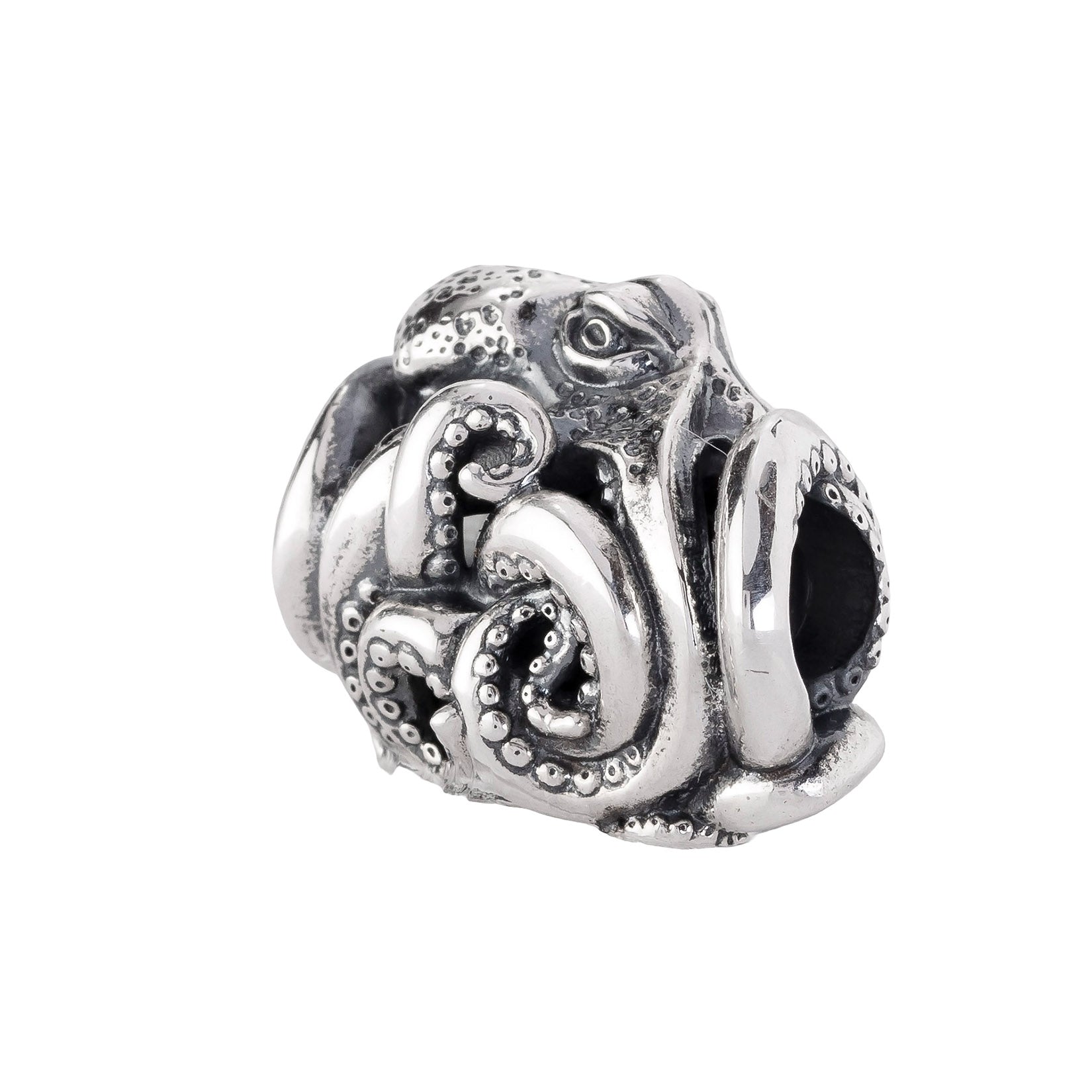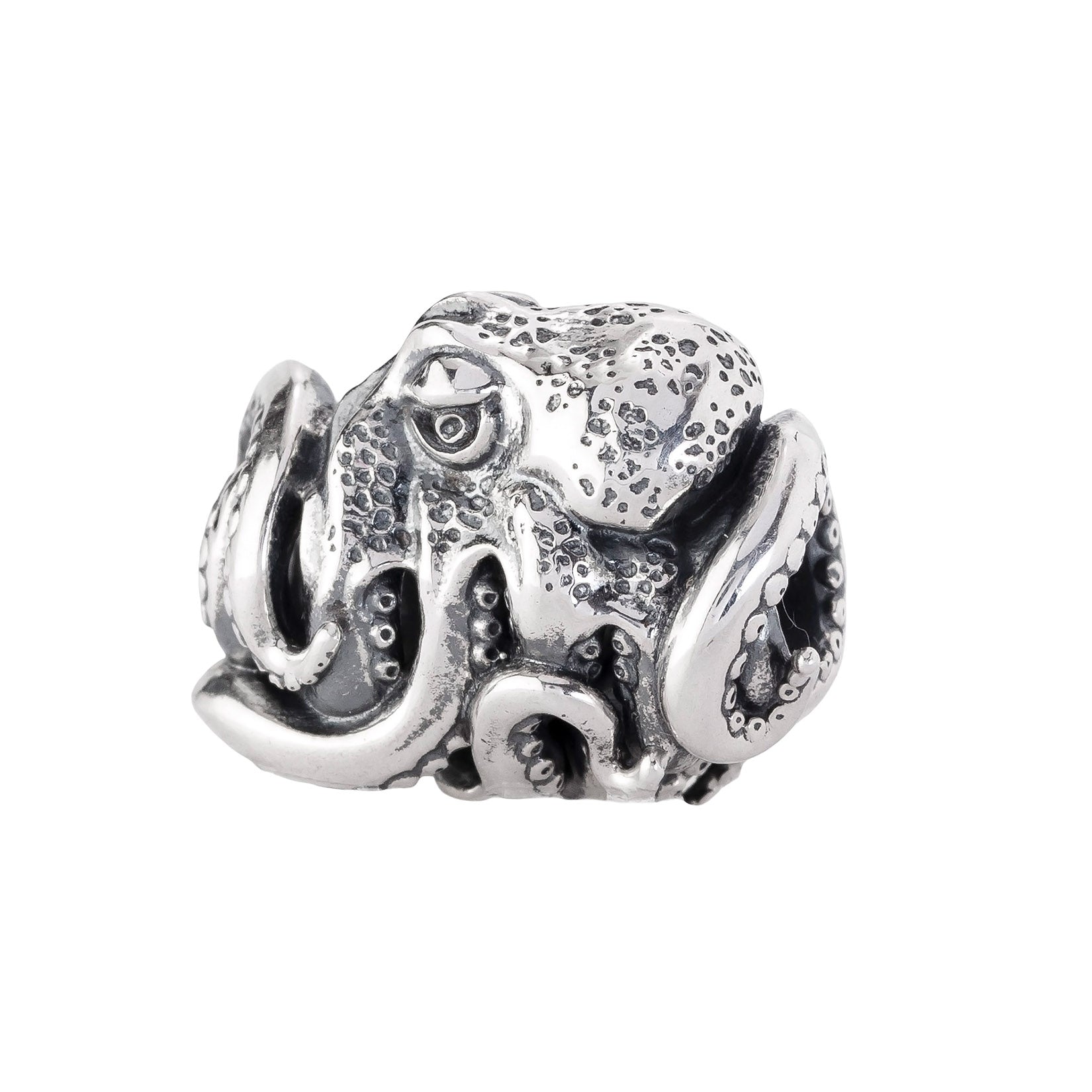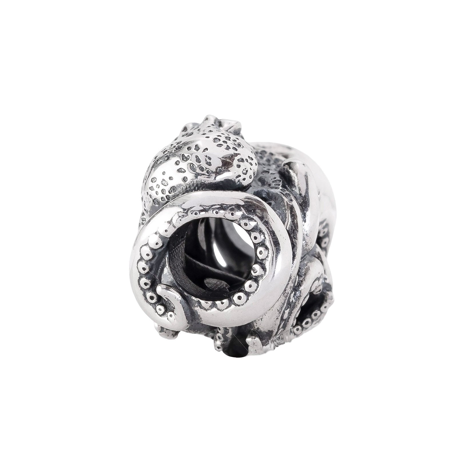 Designed by Dora Putero. Bead size: Height ~14mm; Width ~18mm; Depth ~11mm; Weight ~7g. The 4.7mm hole fits Elfbeads, Pandora, and Trollbeads bracelets. Crafted from premium nickel-free sterling silver, each bead is marked with the E925 hallmark for Elfbeads and 925 silver.