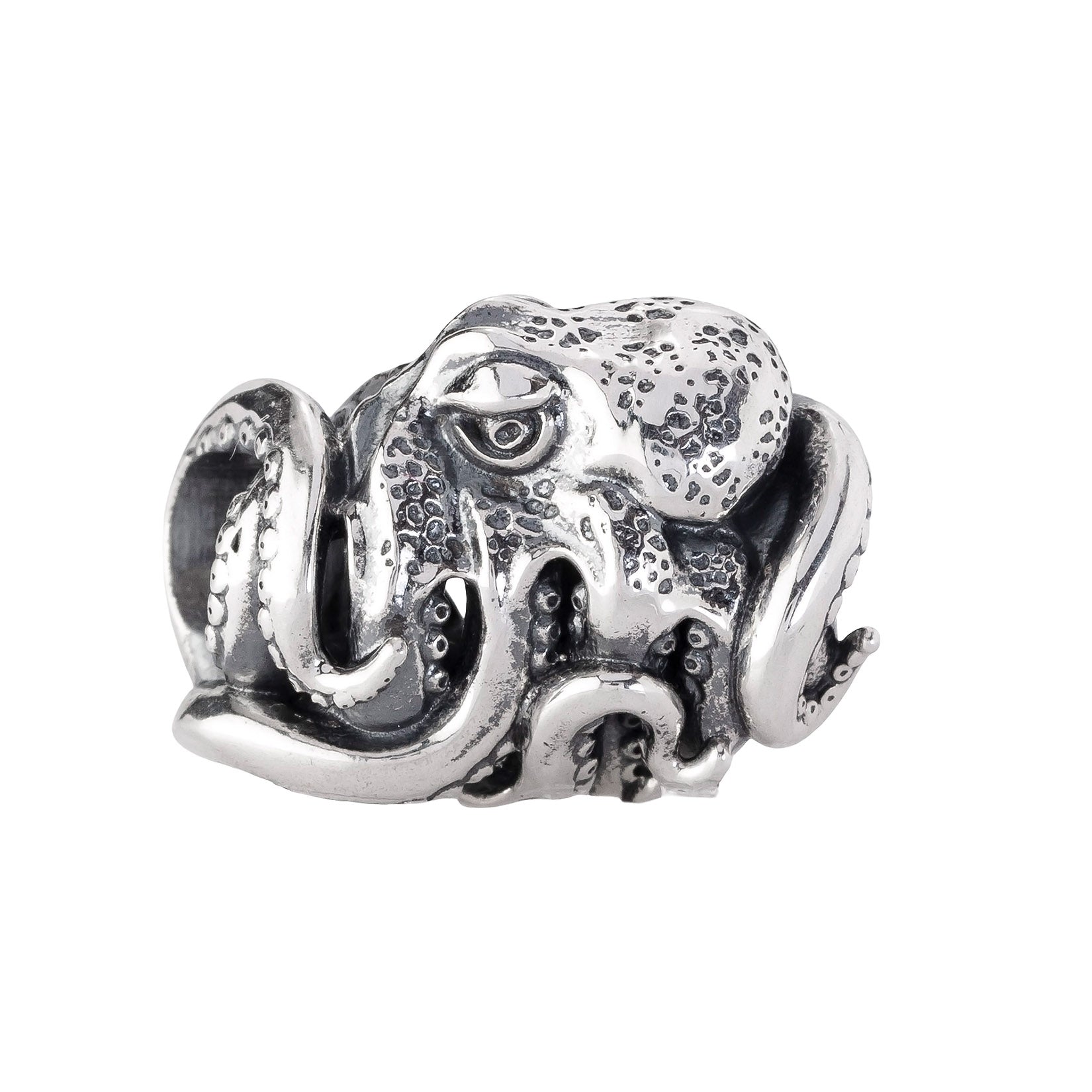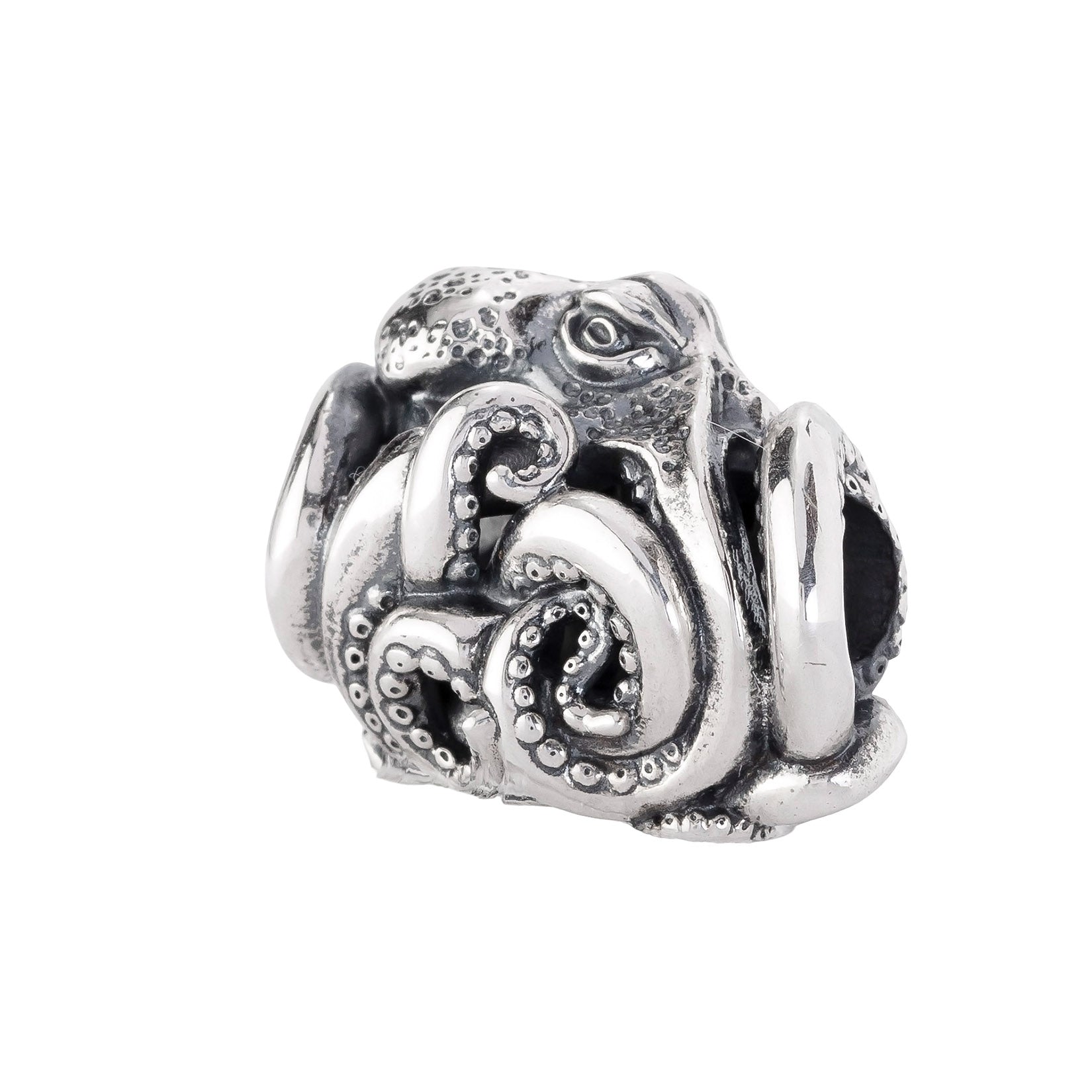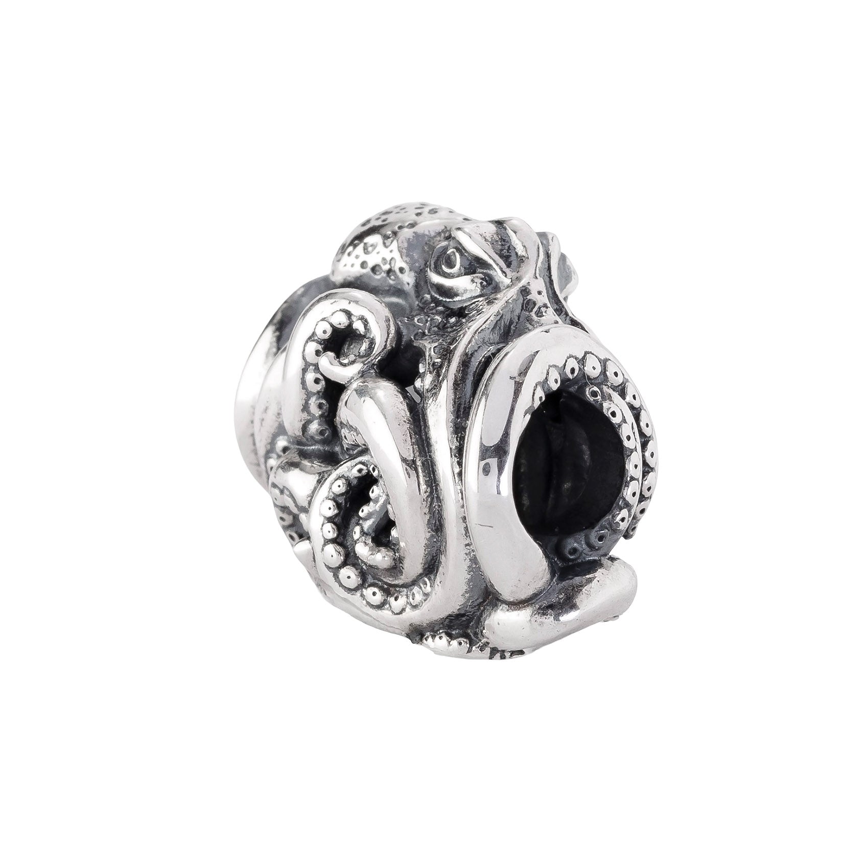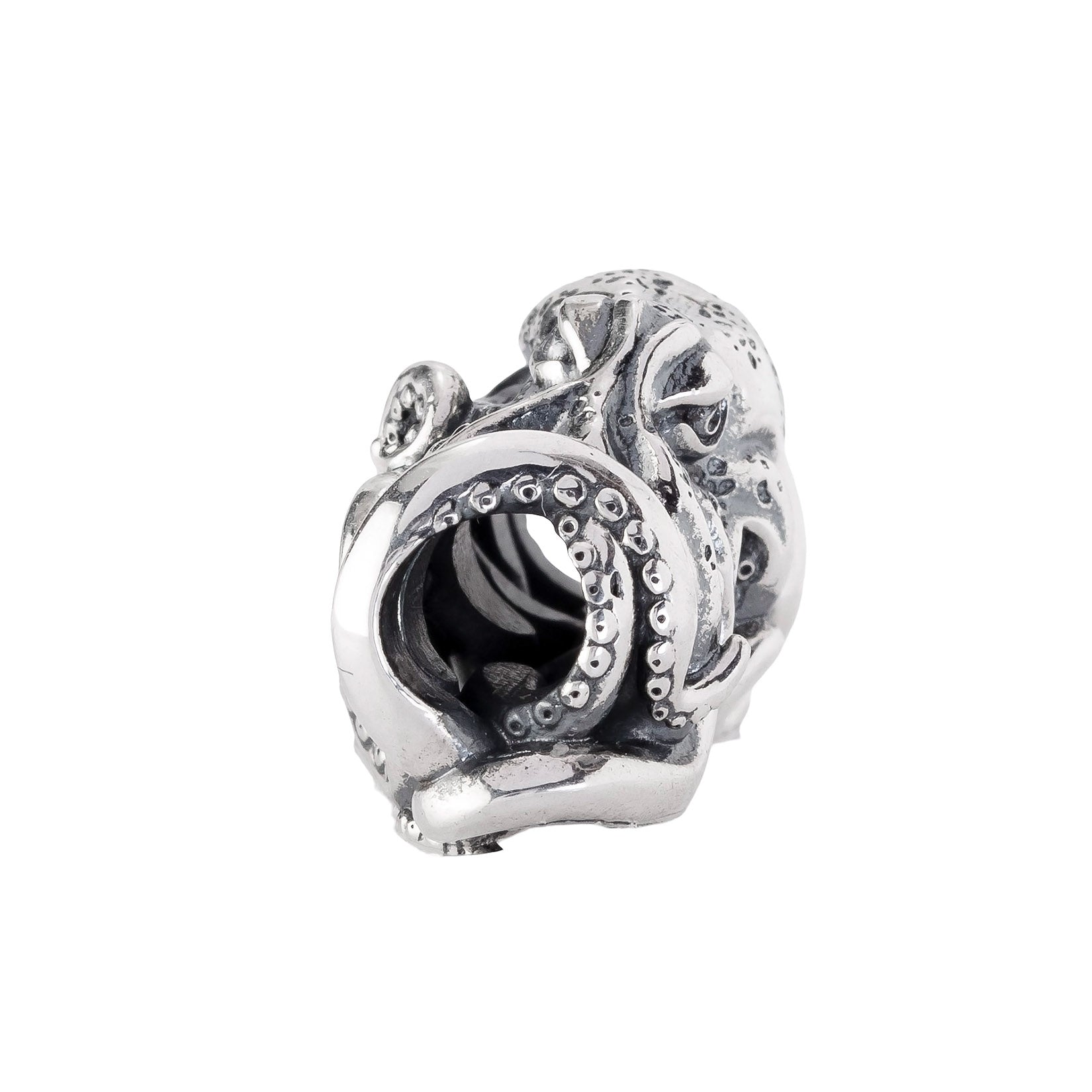 Designed by Dora Putero. Bead size: Height ~14mm; Width ~18mm; Depth ~11mm; Weight ~7g. The 4.7mm hole fits Elfbeads, Pandora, and Trollbeads bracelets. Crafted from premium nickel-free sterling silver, each bead is marked with the E925 hallmark for Elfbeads and 925 silver.