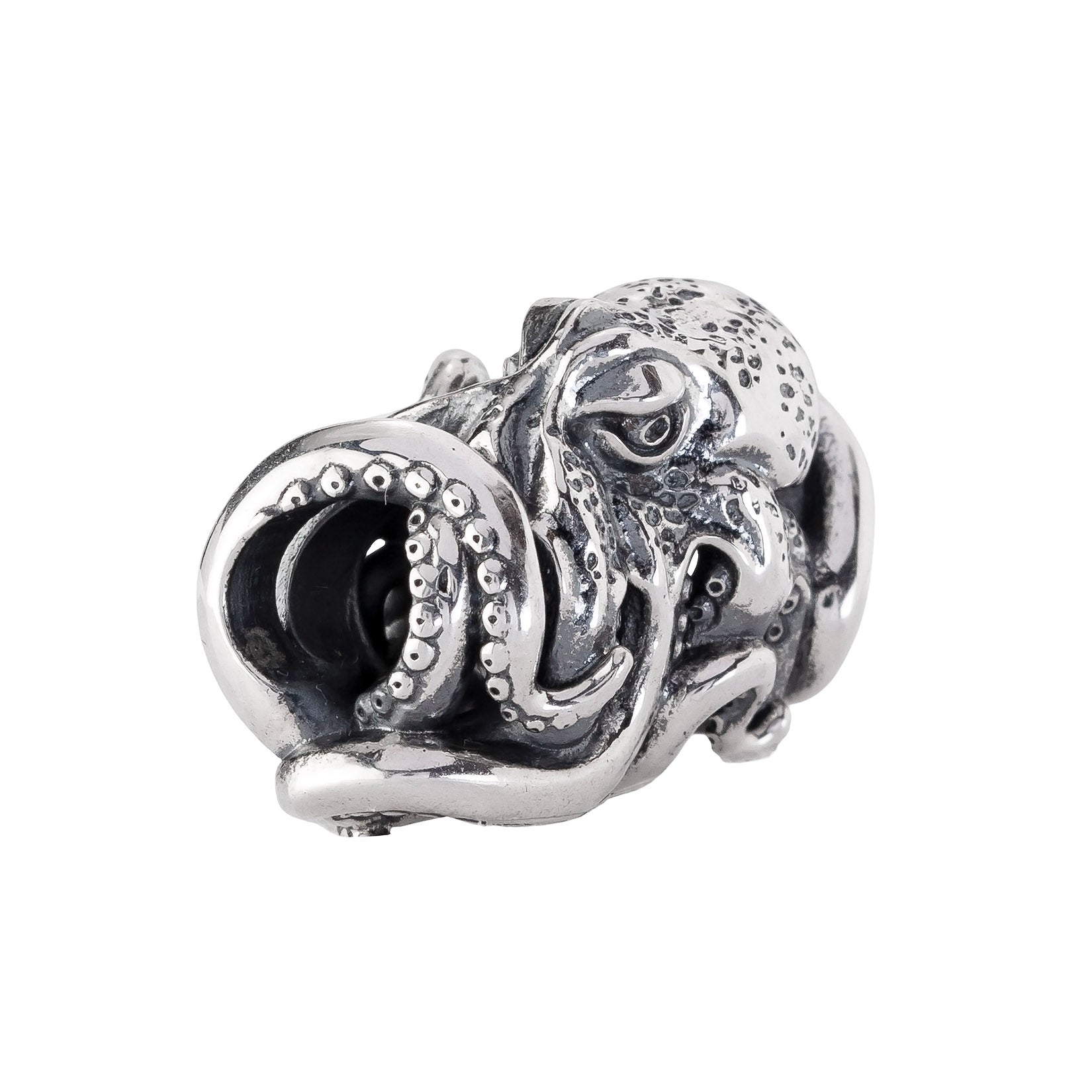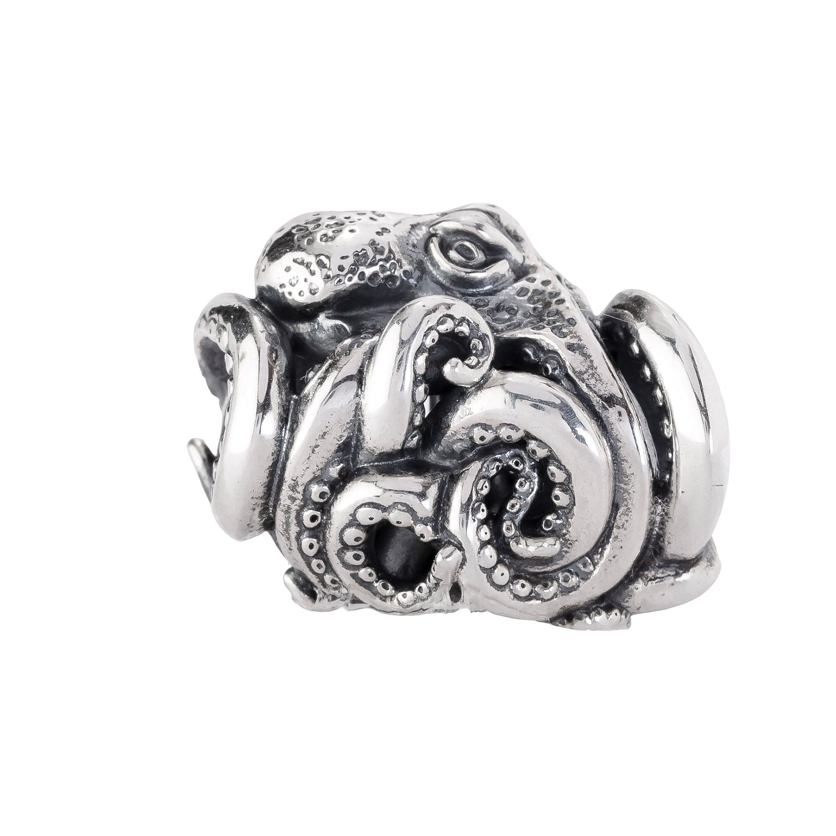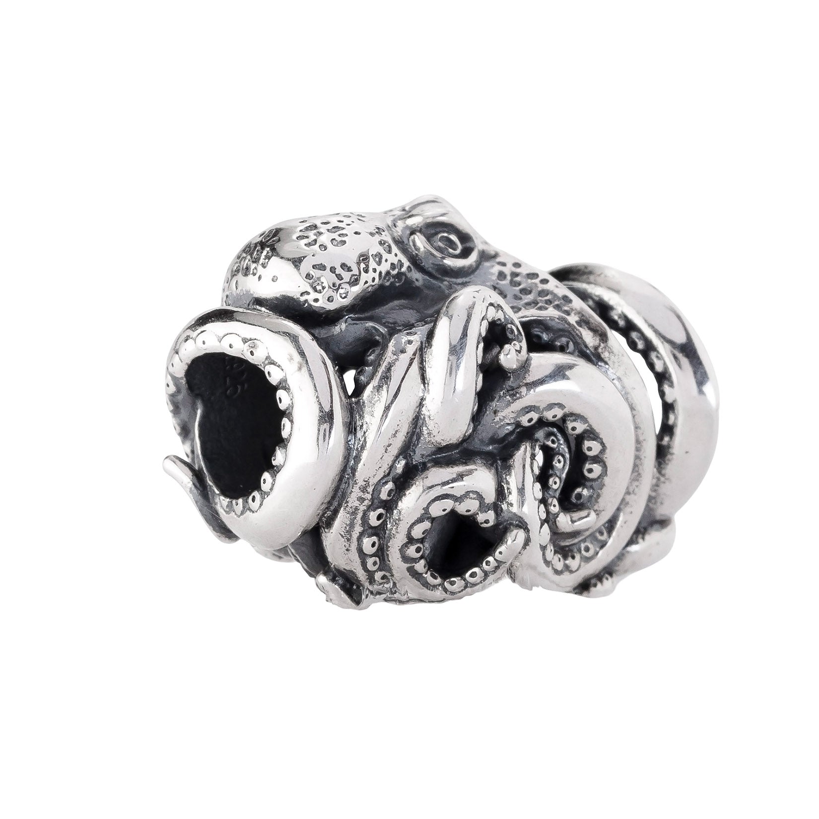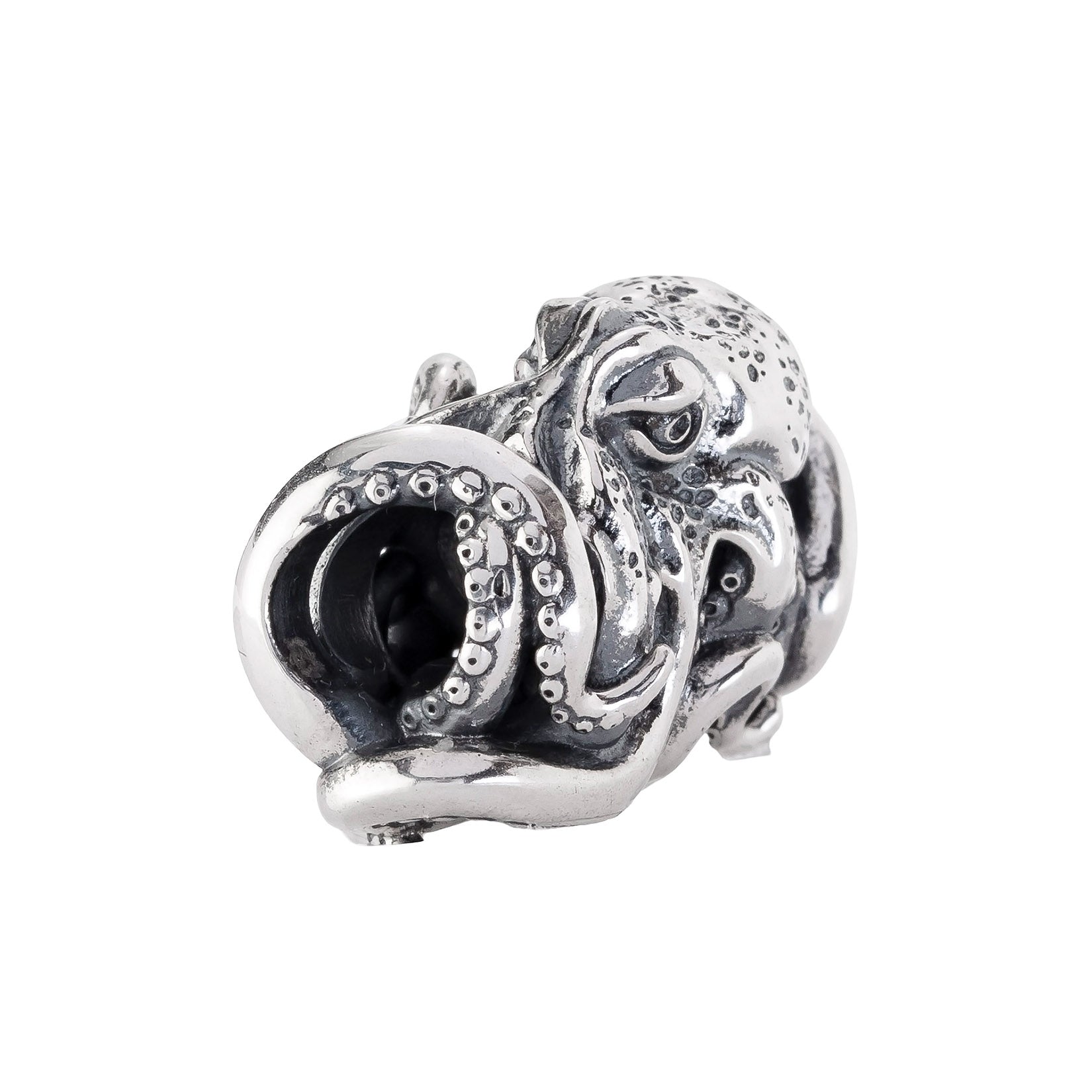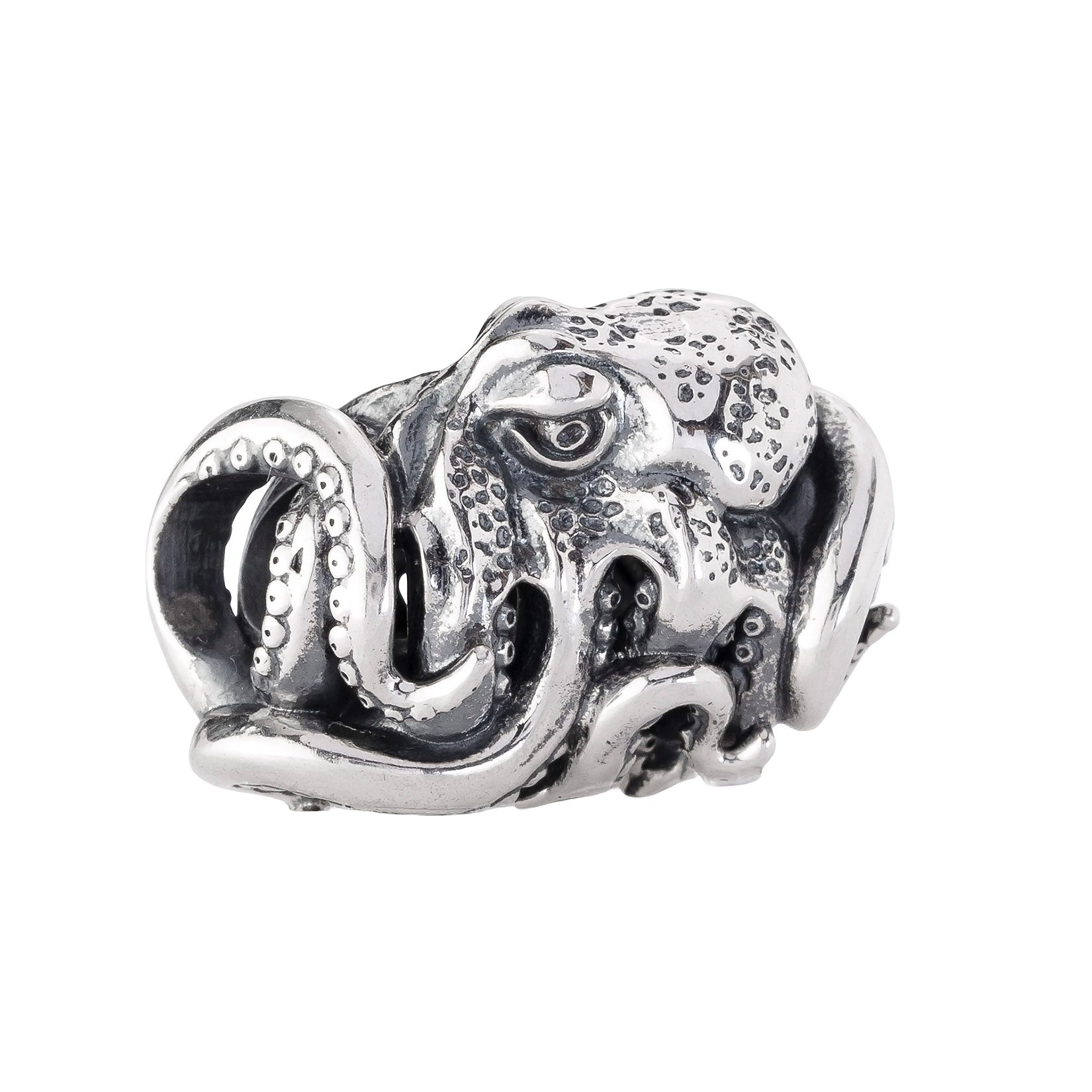 Designed by Dora Putero. Bead size: Height ~14mm; Width ~18mm; Depth ~11mm; Weight ~7g. The 4.7mm hole fits Elfbeads, Pandora, and Trollbeads bracelets. Crafted from premium nickel-free sterling silver, each bead is marked with the E925 hallmark for Elfbeads and 925 silver.
