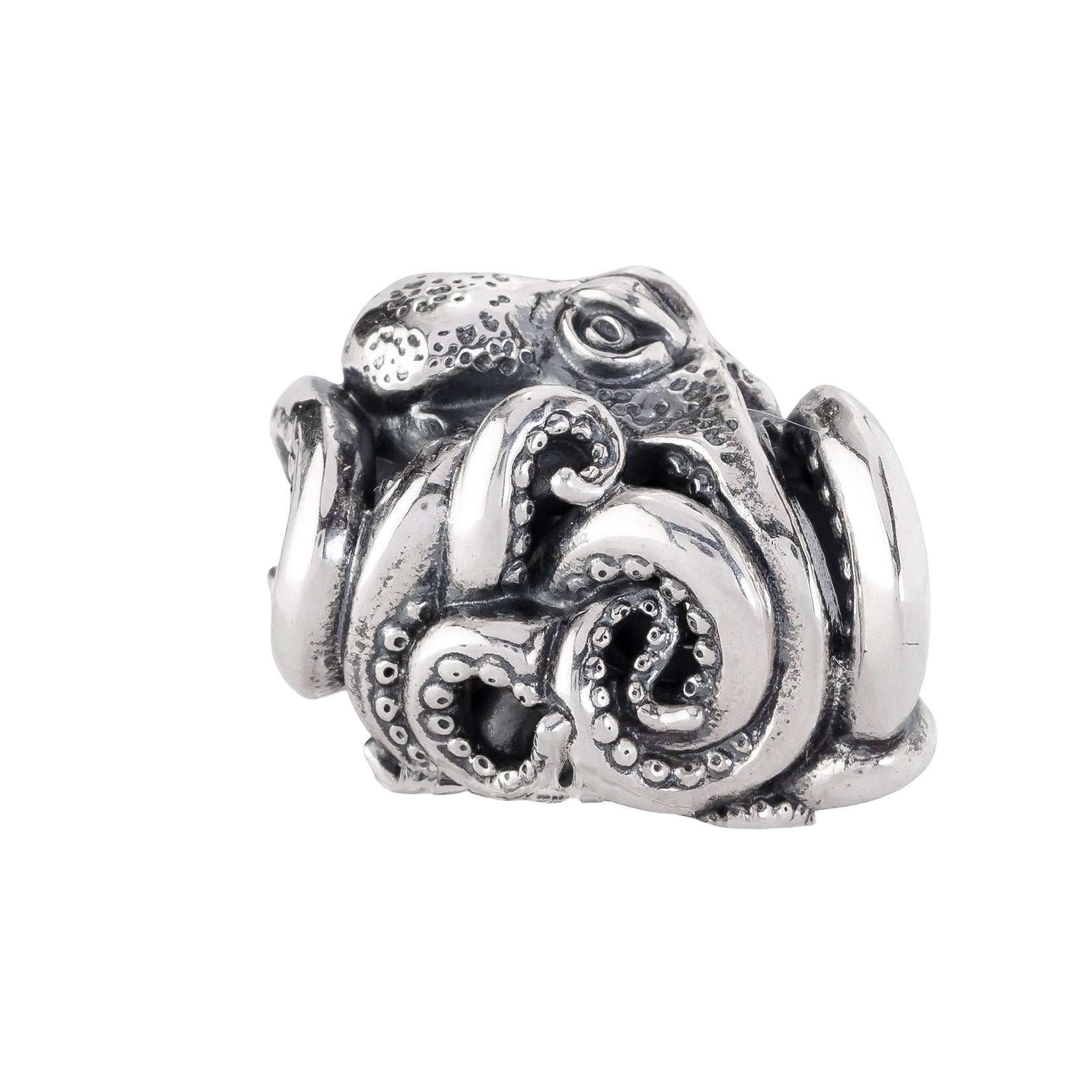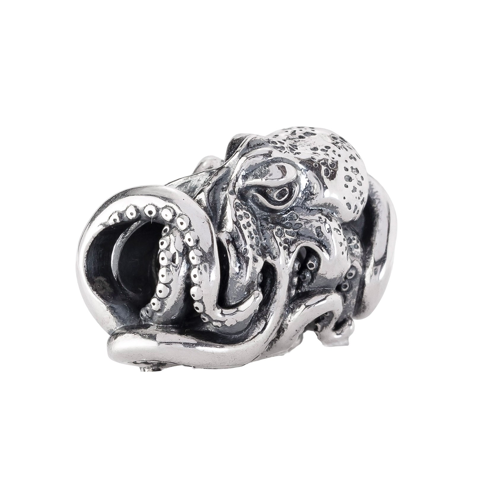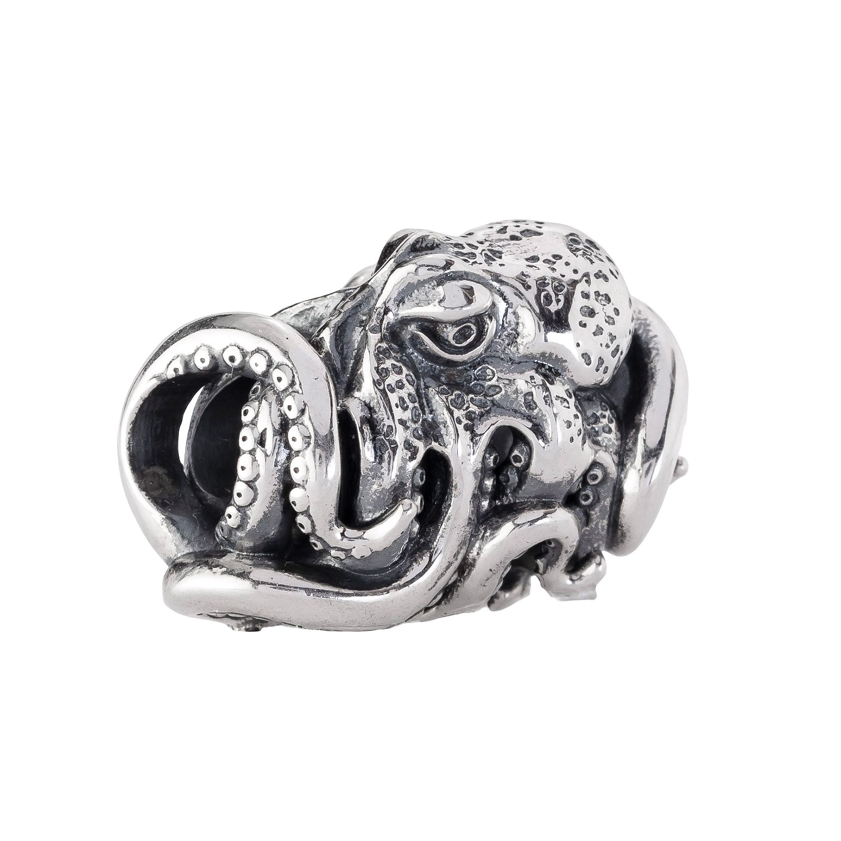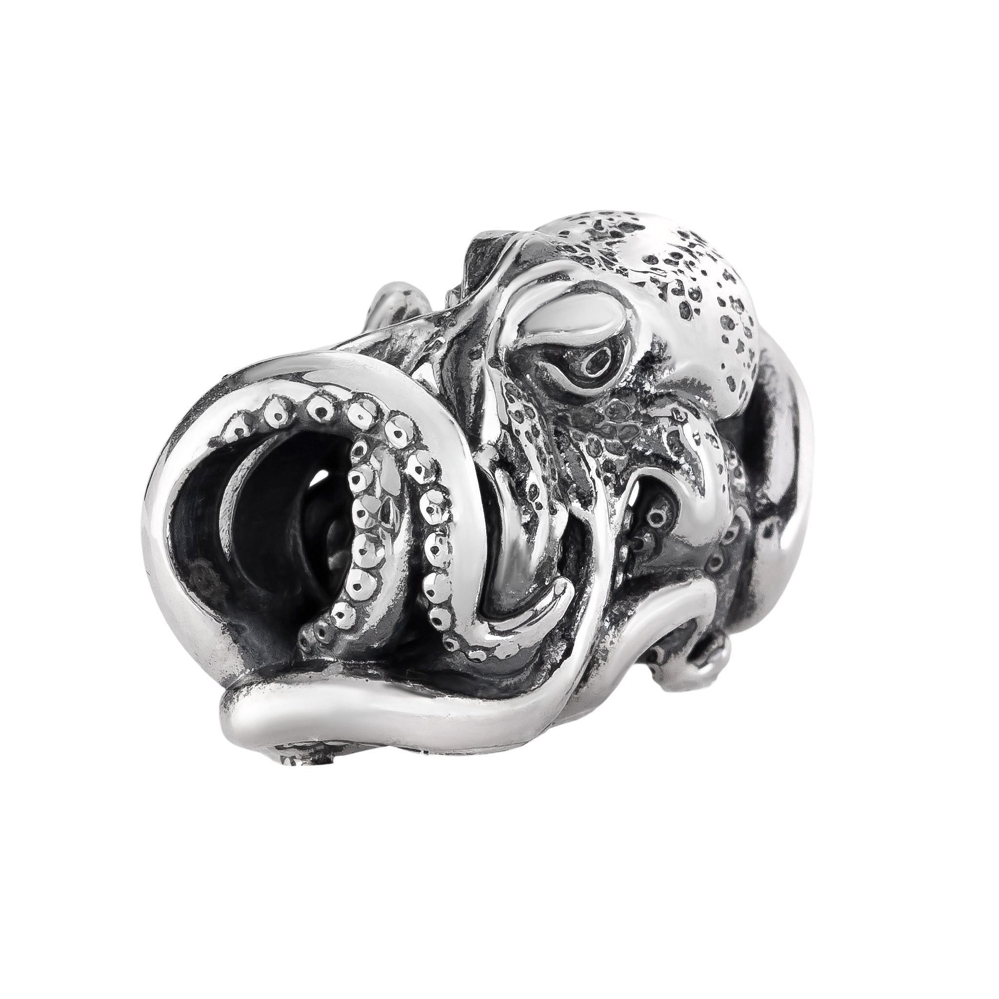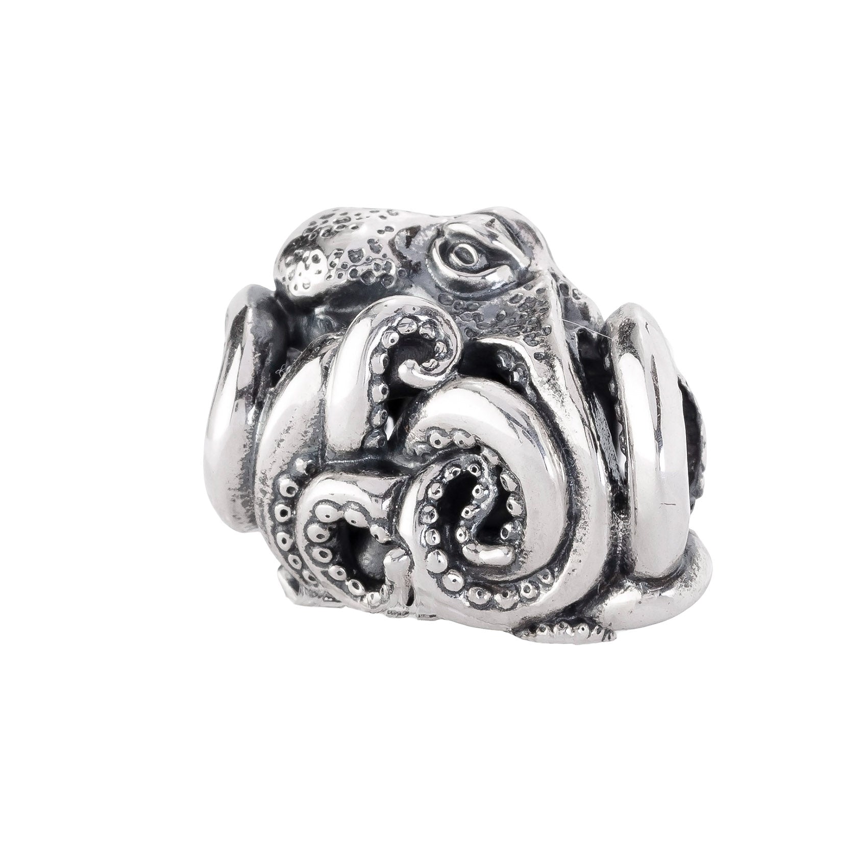 Designed by Dora Putero. Bead size: Height ~14mm; Width ~18mm; Depth ~11mm; Weight ~7g. The 4.7mm hole fits Elfbeads, Pandora, and Trollbeads bracelets. Crafted from premium nickel-free sterling silver, each bead is marked with the E925 hallmark for Elfbeads and 925 silver.